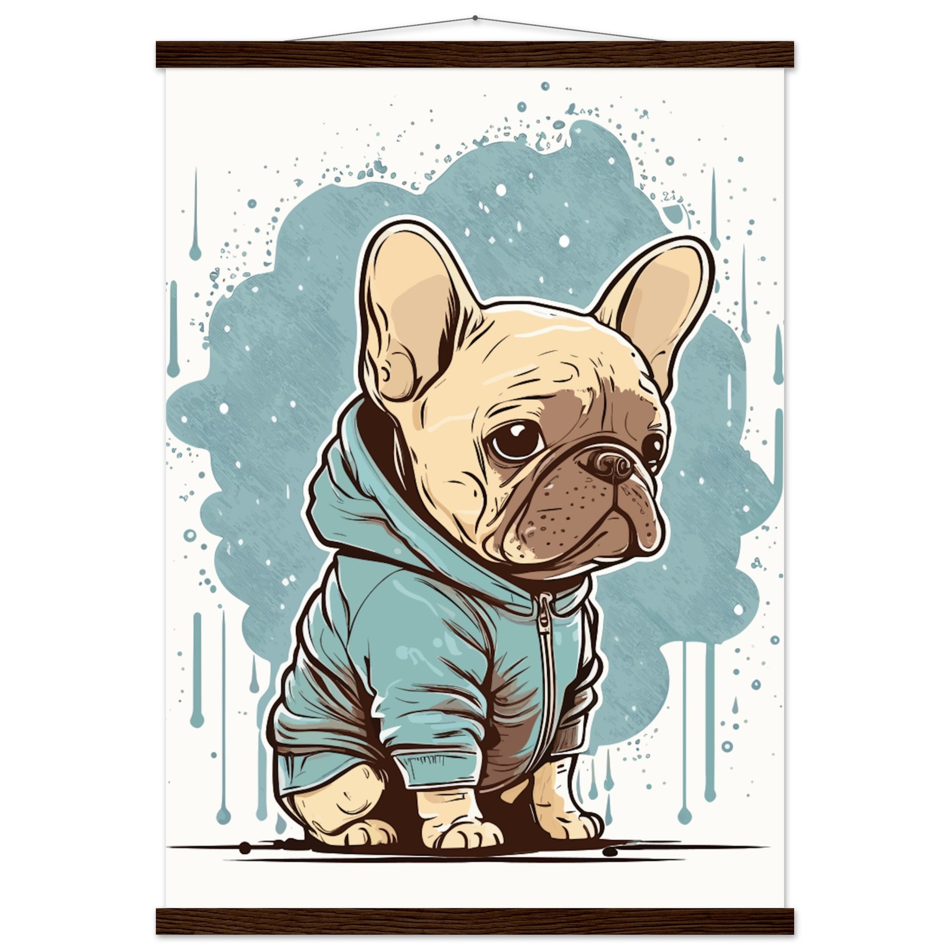 Dog Poster - Cute French Bulldog with light hoodie - Premium Matte Poster with Hanger