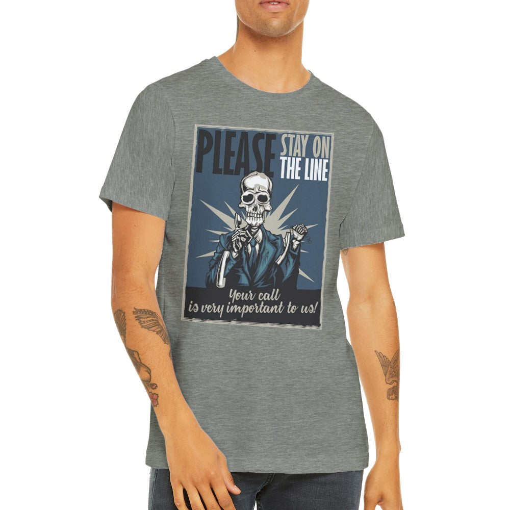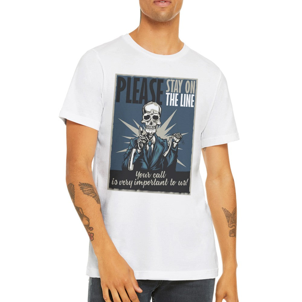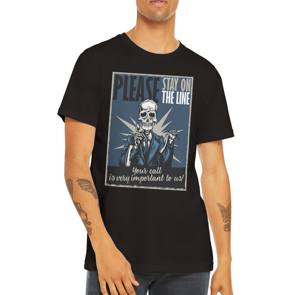 Fun T-Shirts - Please Stay On The Line Artwork - Premium Unisex T-shirt