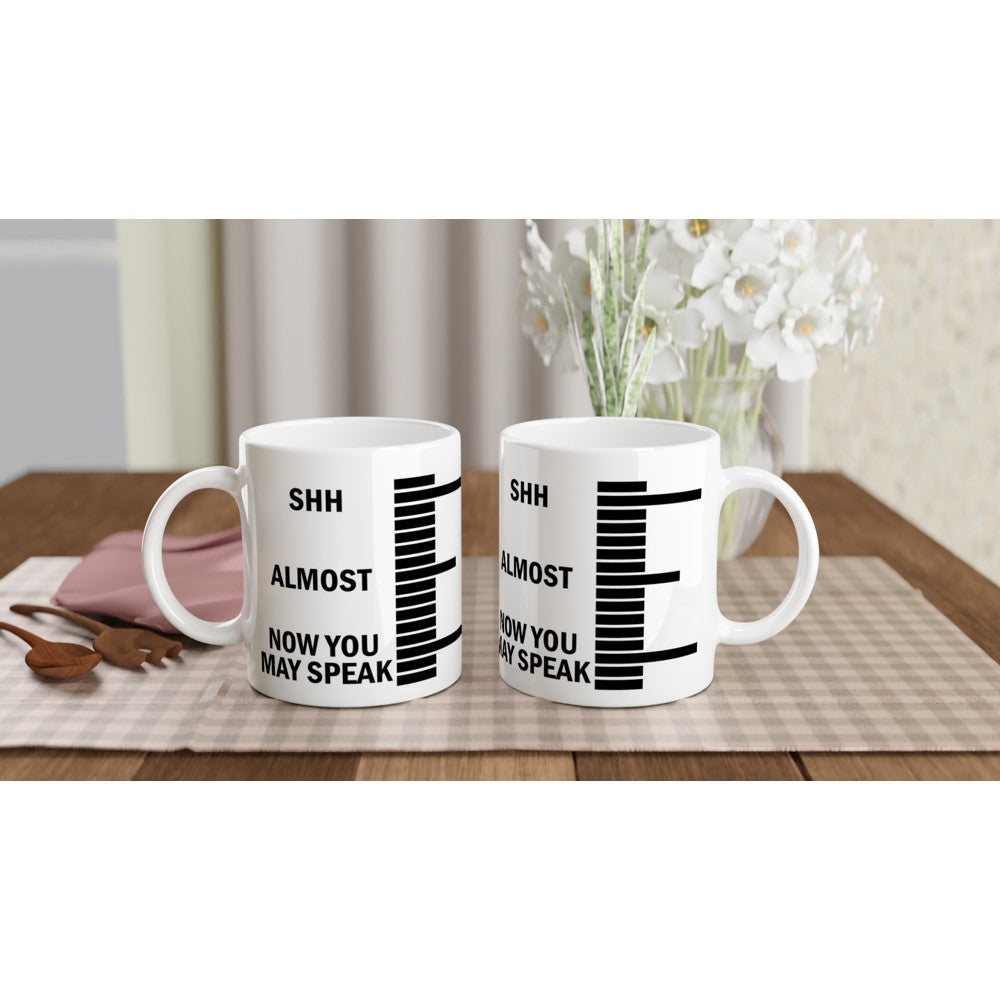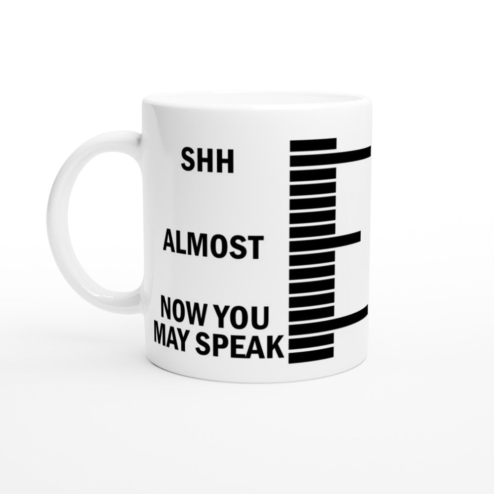 Shhh… Almost… Now You May Speak – Sjovt Krus i Hvid Keramik (330 ml)