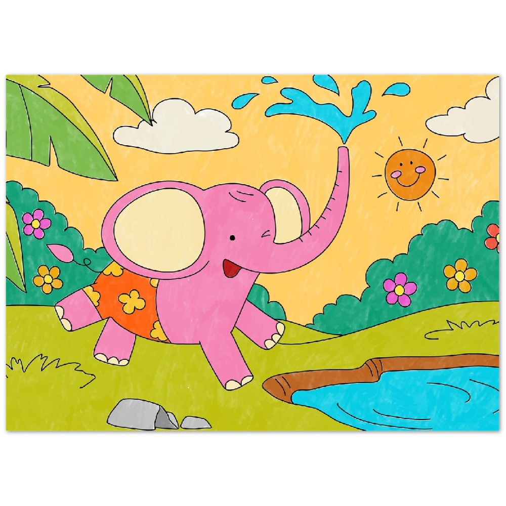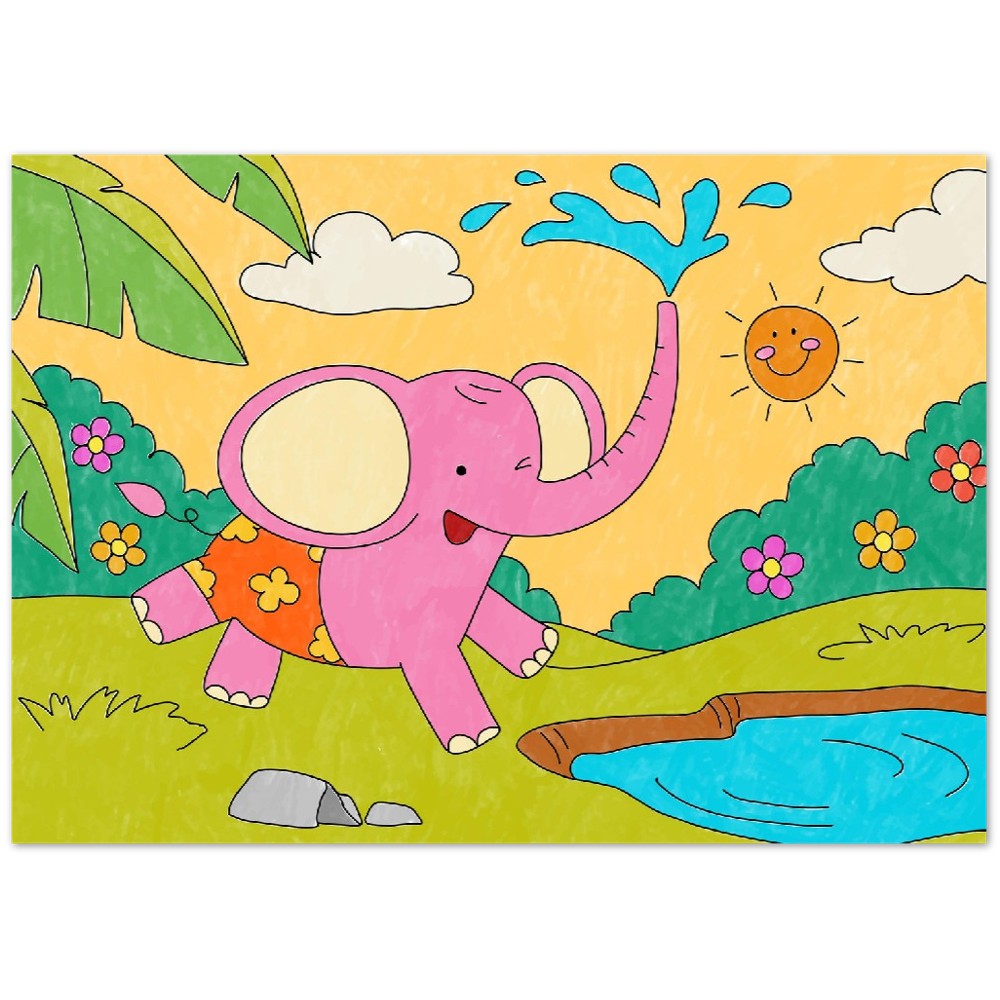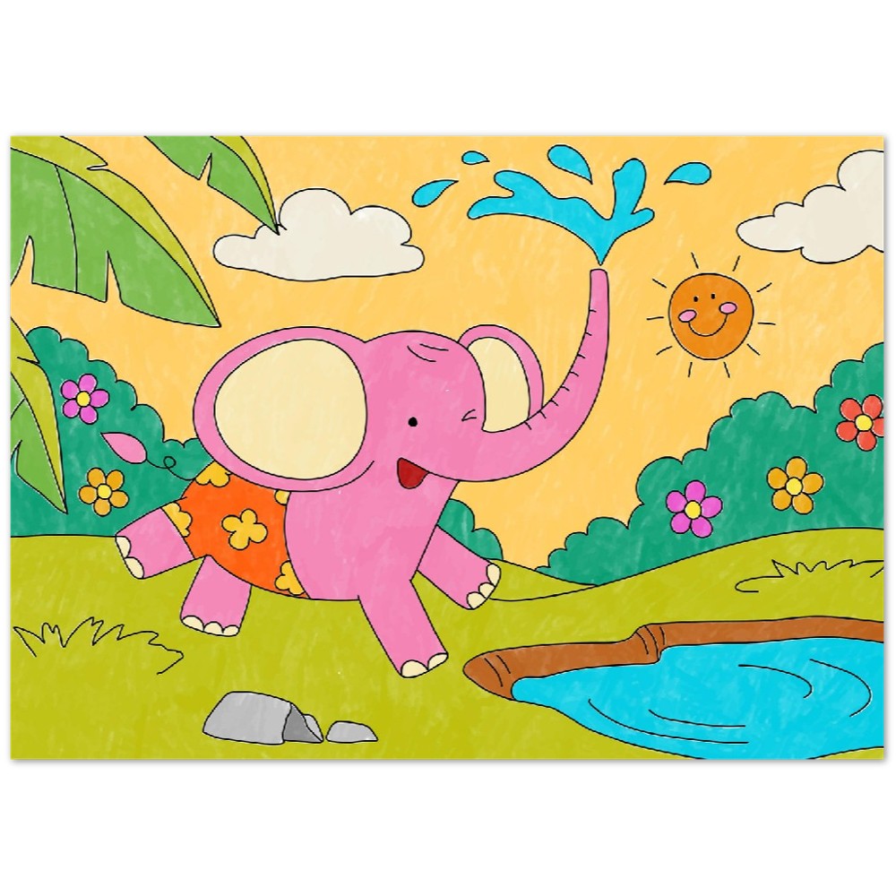 Plakat - Farverig Elefant Børneplakat - Mat Museums Papir