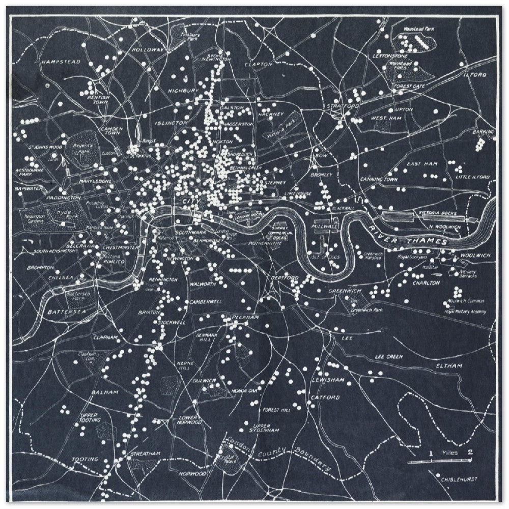 Plakat - London Kort Over Zeppelin og Flybomber (1919 ) Premium Mat Papir