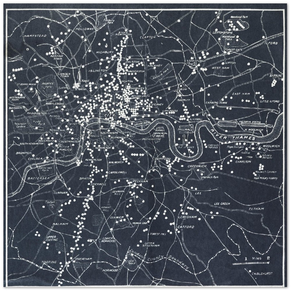 Plakat - London Kort Over Zeppelin og Flybomber (1919 ) Premium Mat Papir
