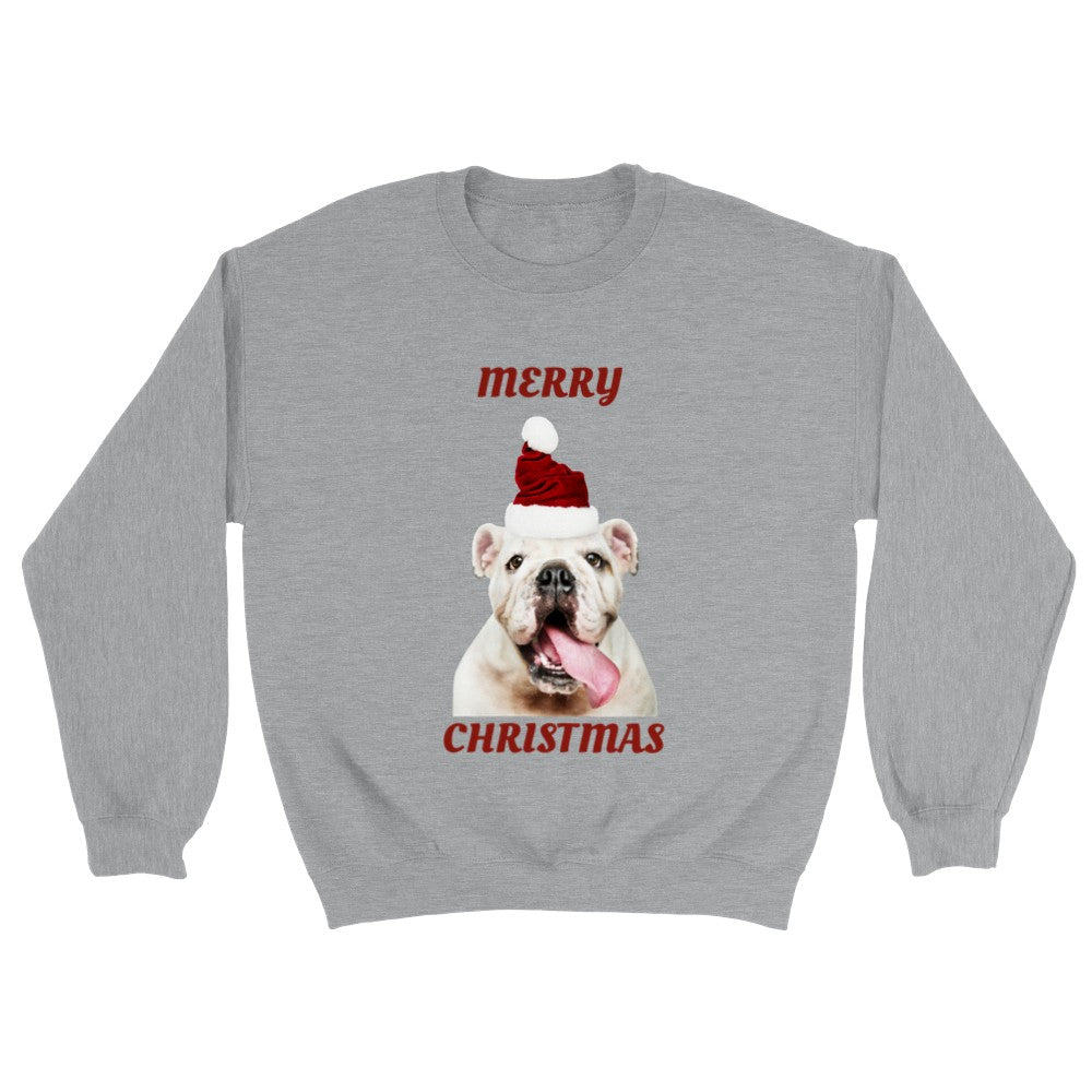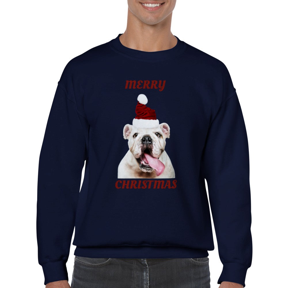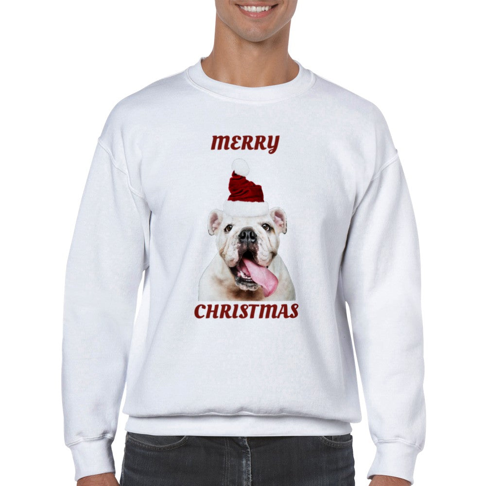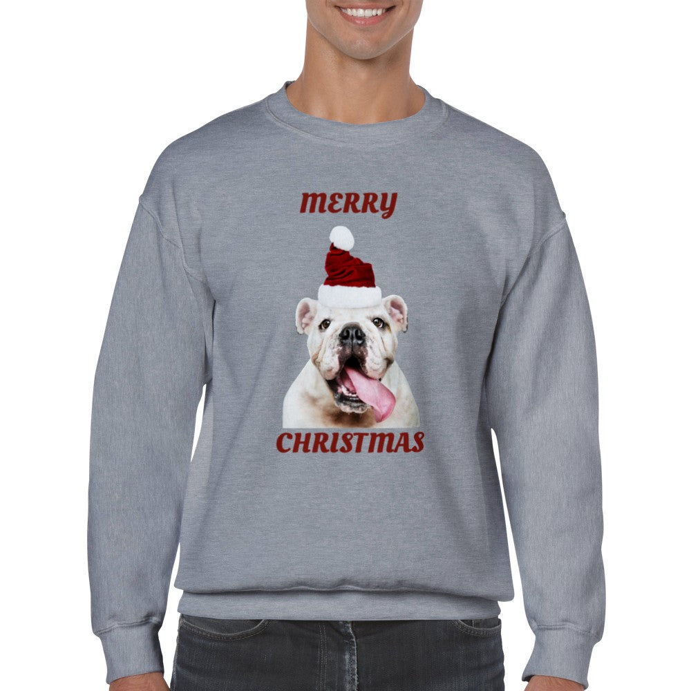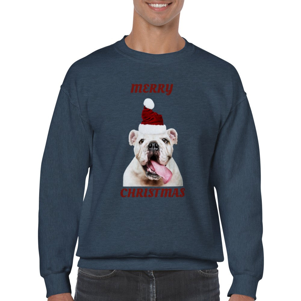 Sweatshirt - Merry Christmas Happy Bulldog - Klassisk Unisex Crewneck Sweatshirt